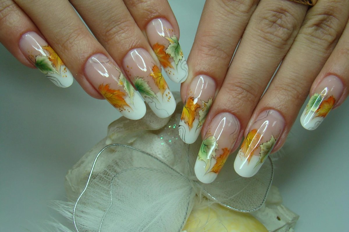 - Покрываем закрепителем, и наш осенний маникюр готов.