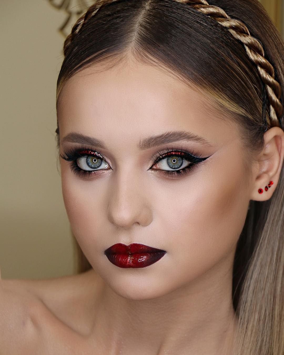 Сексуальный, дерзкий, яркий макияж, который точно не оставит никого равнодушным. Отлично подойдет для ночного клуба, вечеринки в стиле «вамп» или для тех, кто хочет примерить на себя кардинально новый образ 🙂