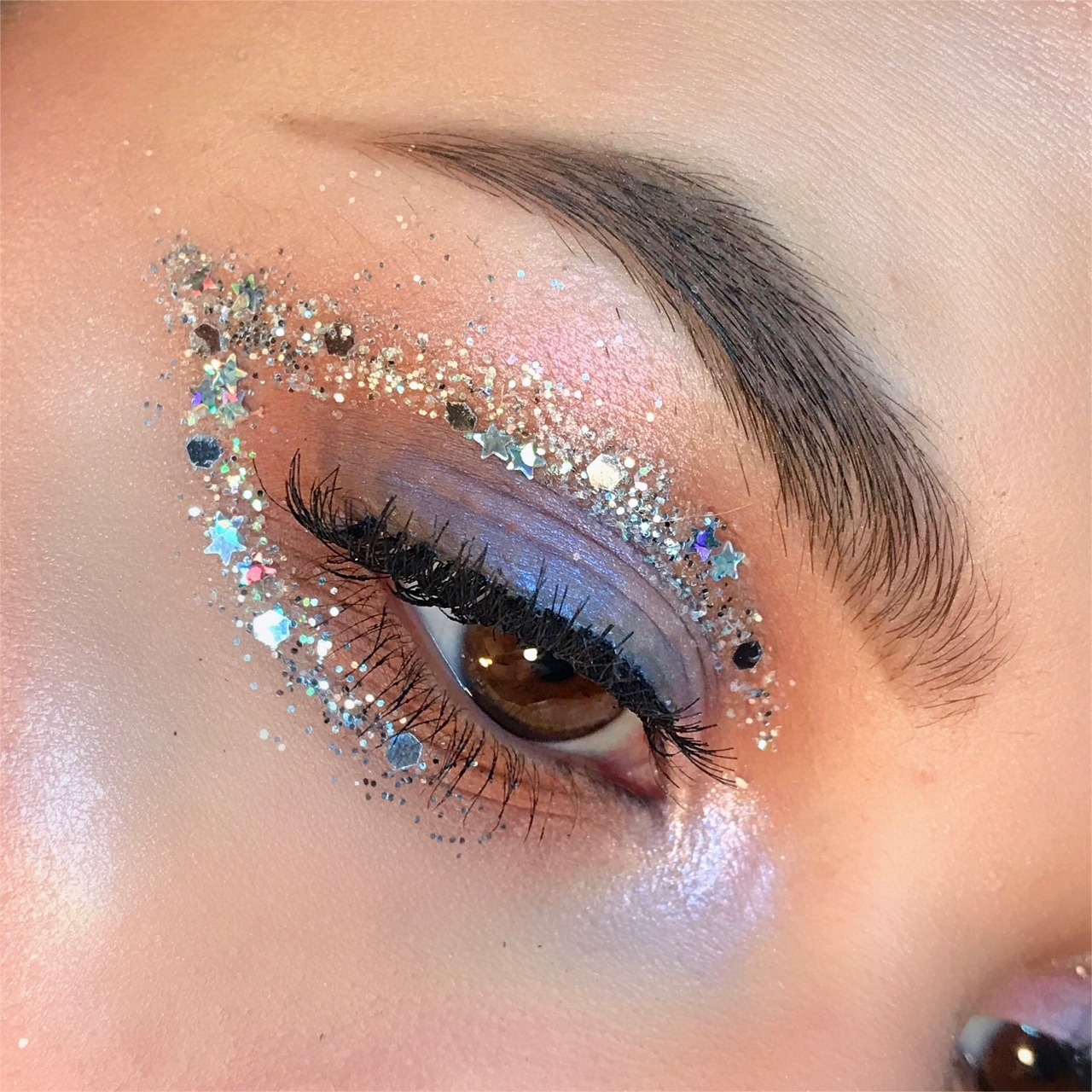Наш простой и невероятно эффектный серебристый макияж с блестками готов. Хороших вам новогодних праздников!