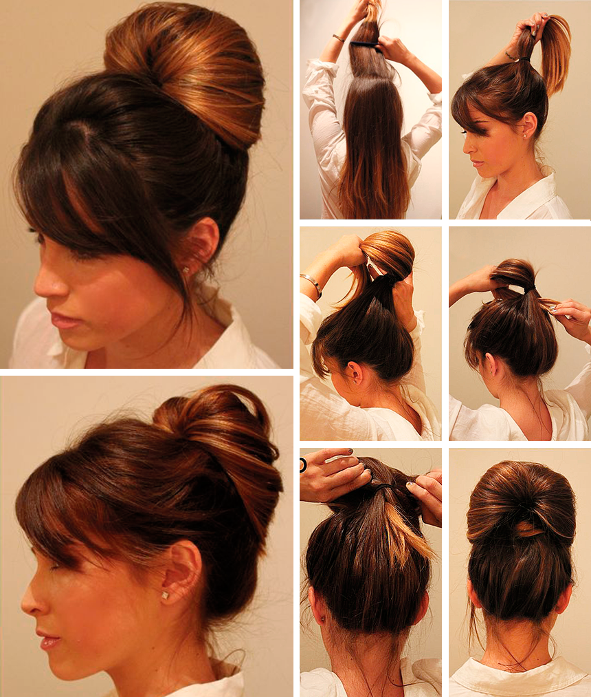 Инструменты: расческа, позволяющая делать начес, щетка для волос, 2 резинки, невидимки.
