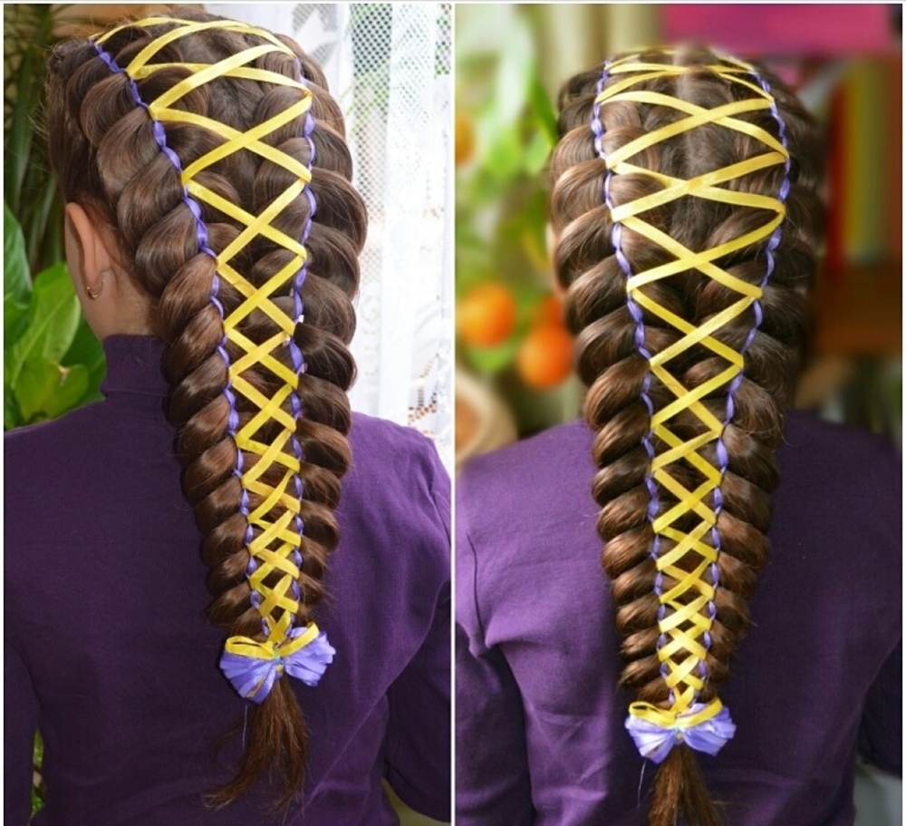 7. Перекрестите две косы так, чтобы левая оказалась поверх правой.