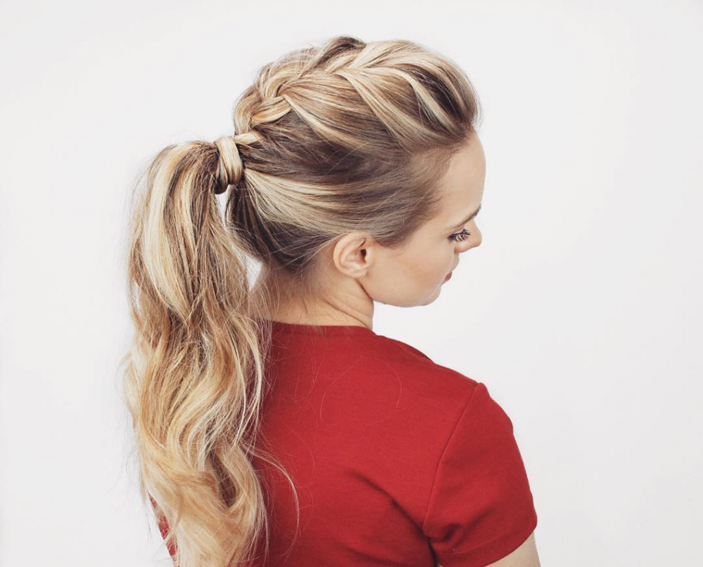 6. В завершение этой прически, возьмите небольшую прядь волос с левого боку и оберните ею хвост, скрыв, таким образом, резинку.