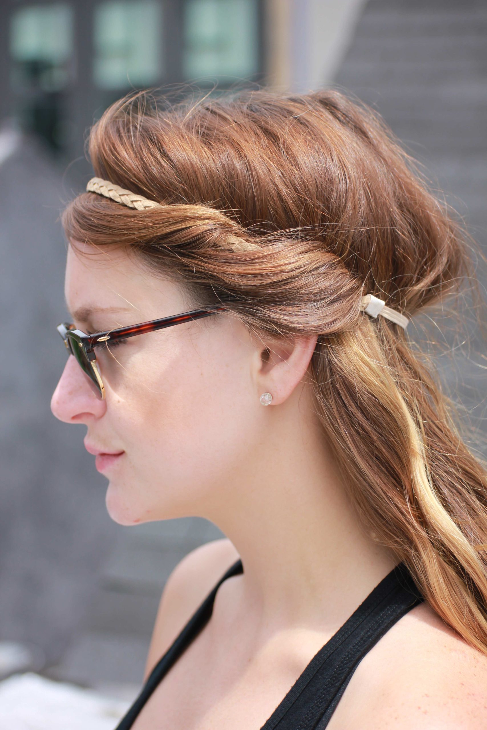 1. Оденьте ободок на голову и аккуратно расправьте волосы под ним.