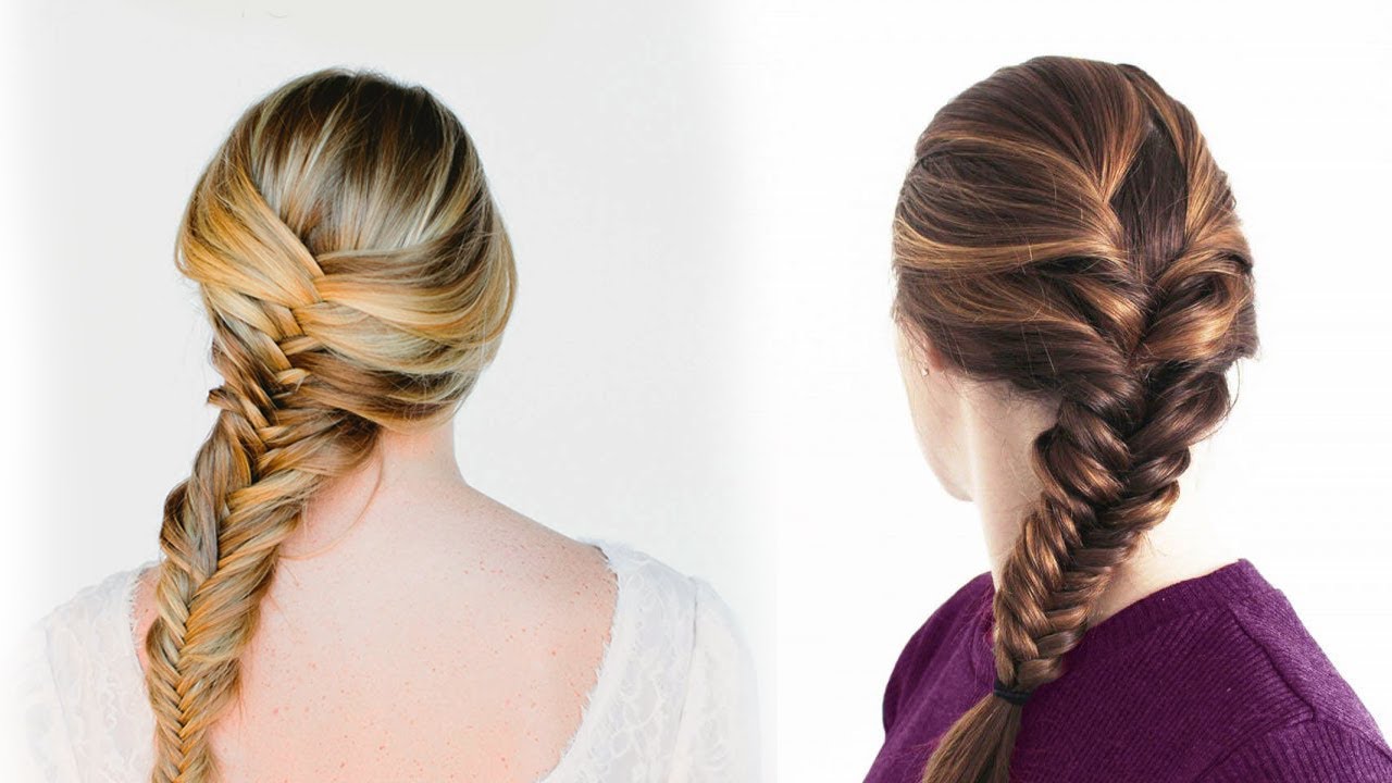 9. Соберите все волосы вместе с левой стороны и заплетите обычный колосок «рыбий хвост». Для этого разделите волосы пополам. Отделите небольшую прядь с краю левой части волос, проложите ее поверх этой части и добавьте к другой части волос. То же самое проделайте справа.