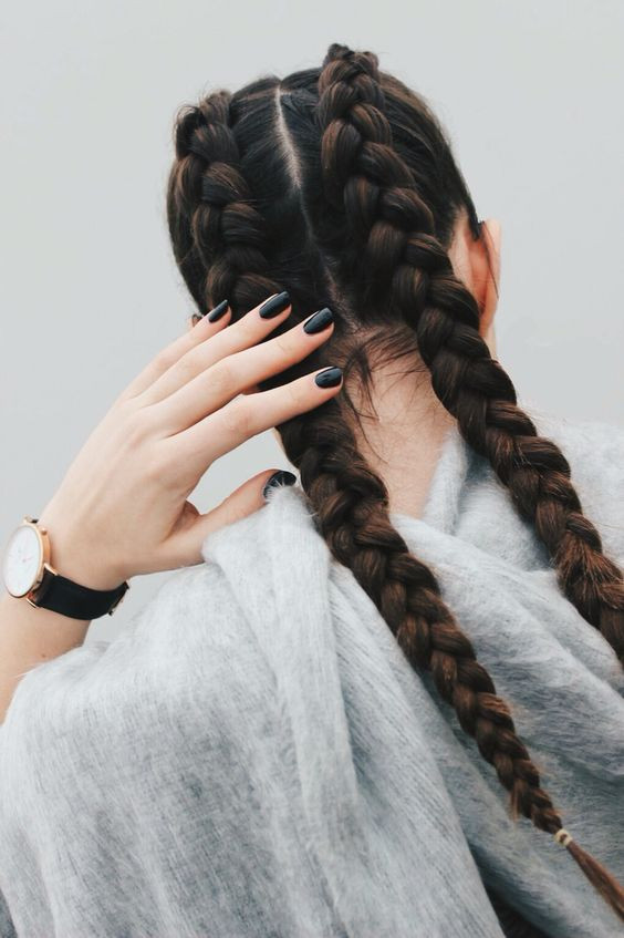 - Закрепляем косу резинкой и при необходимости сбрызгиваем волосы лаком, и приглаживаем их к голове, чтобы не было петухов.