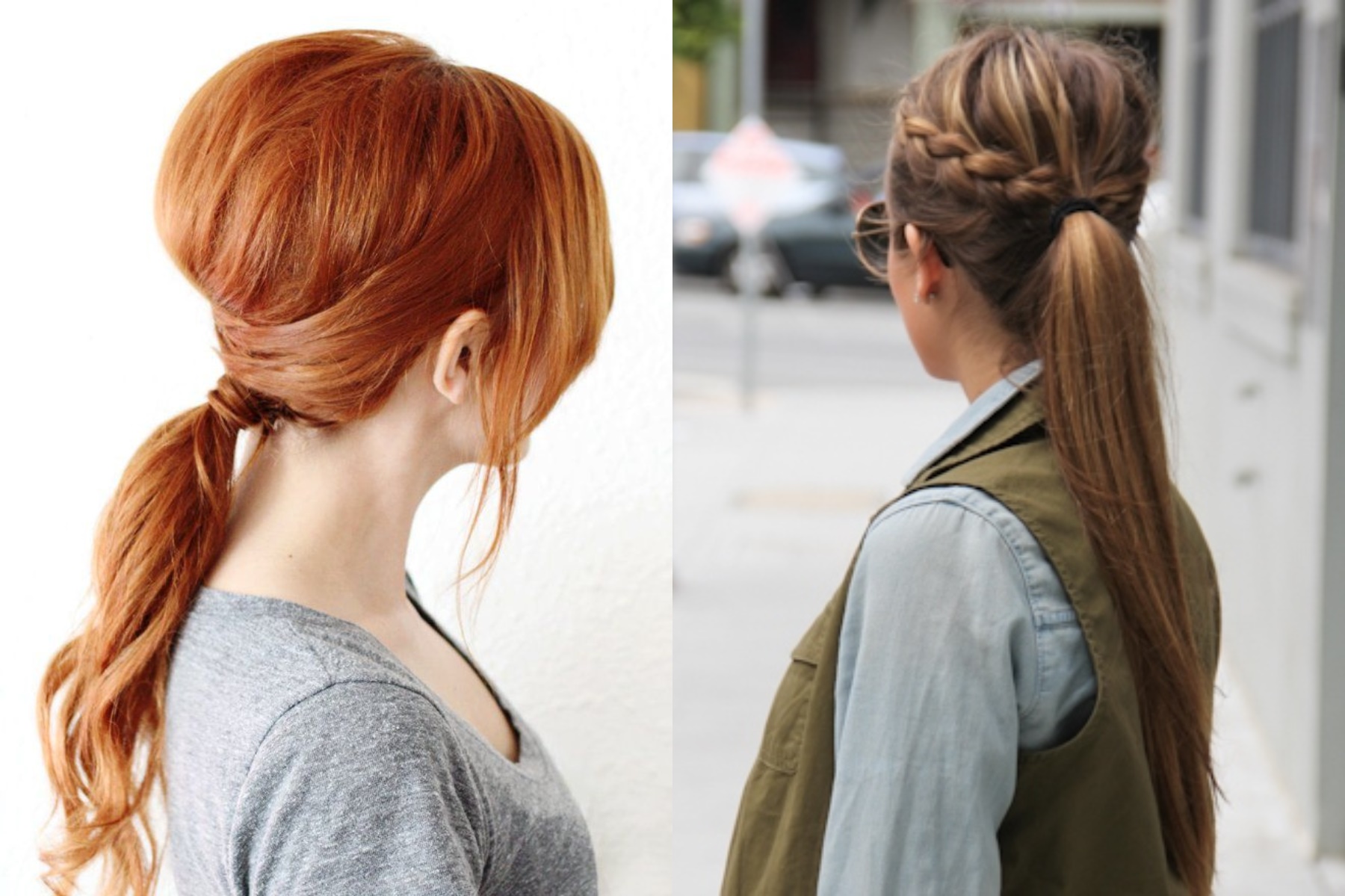 1. Соберите волосы в хвост сбоку.