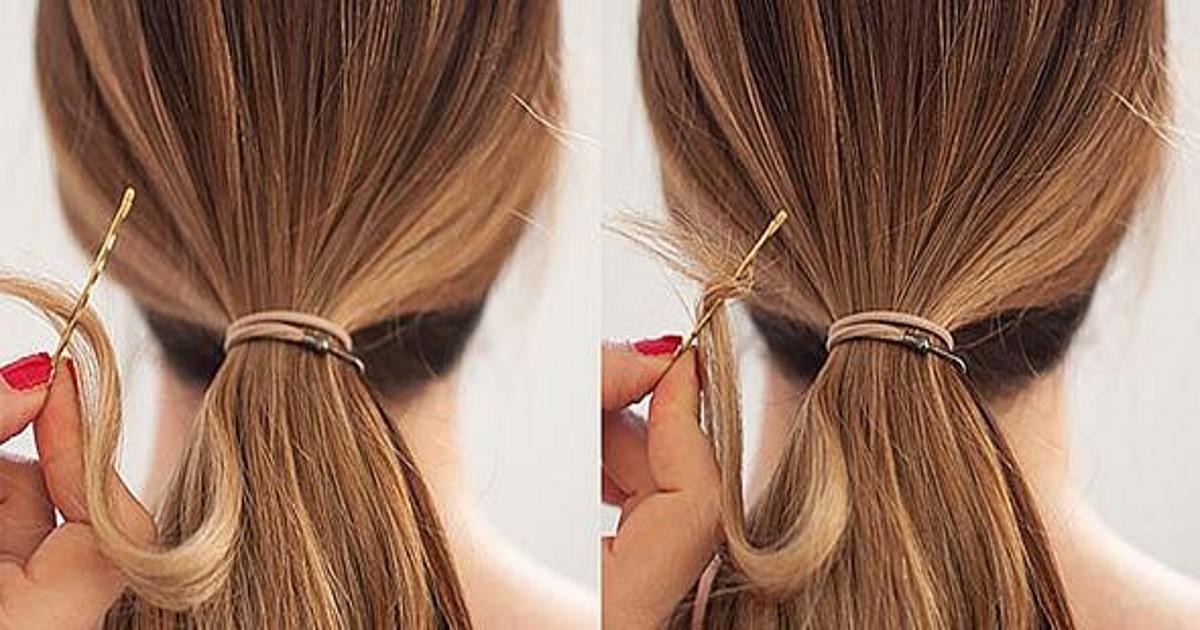 Обычно для этого используют невидимку или специальный зажим. Но что делать, если под рукой не оказалось ни того, ни другого? В этой статье вы узнаете, как, без использования дополнительных аксессуаров, обкрутить хвост прядью, чтобы не было видно резинки.