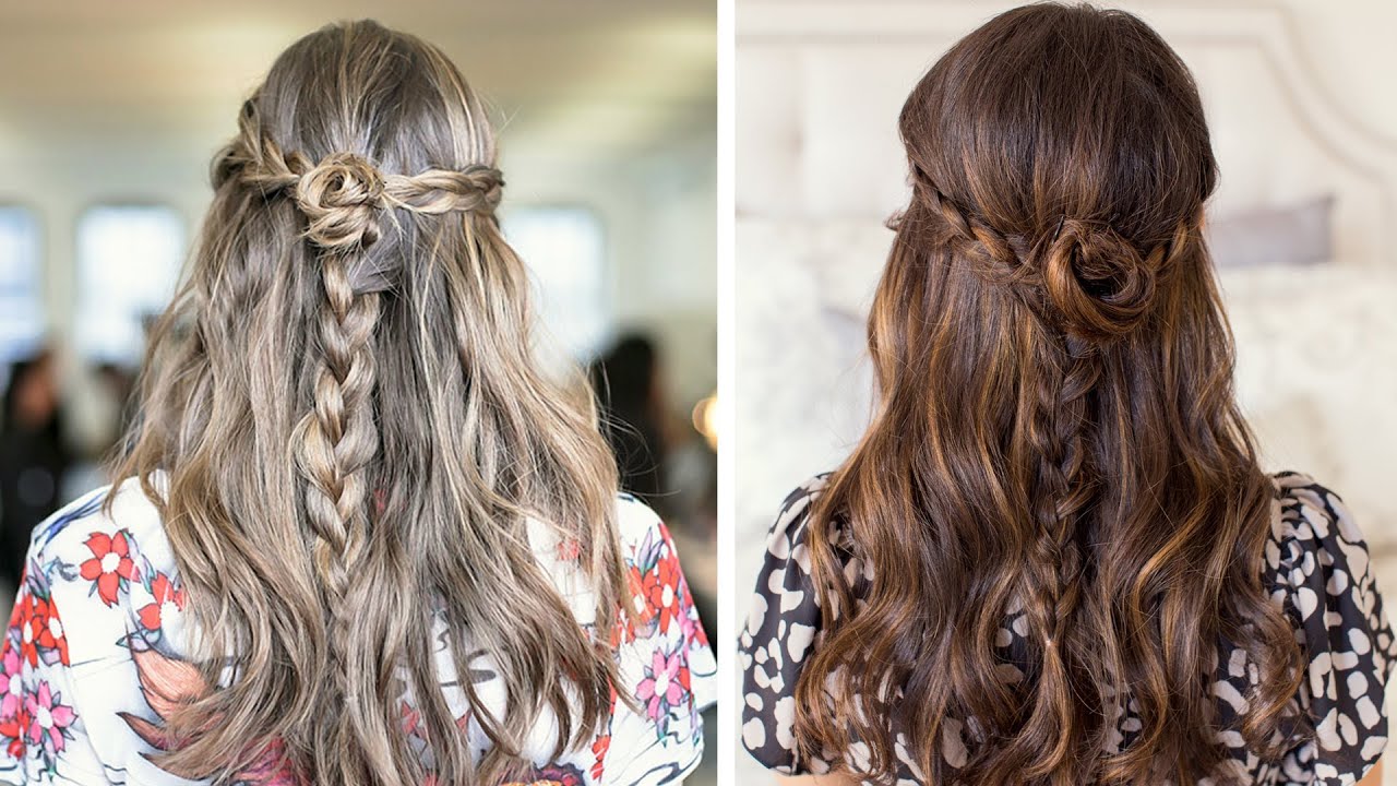 - Эта прическа на скорую руку выглядит очень мило и нежно. Но если вы хотите сделать прическу более нарядной, перед тем как заплетать косы, накрутите волосы на плойку и создайте крупные локоны.