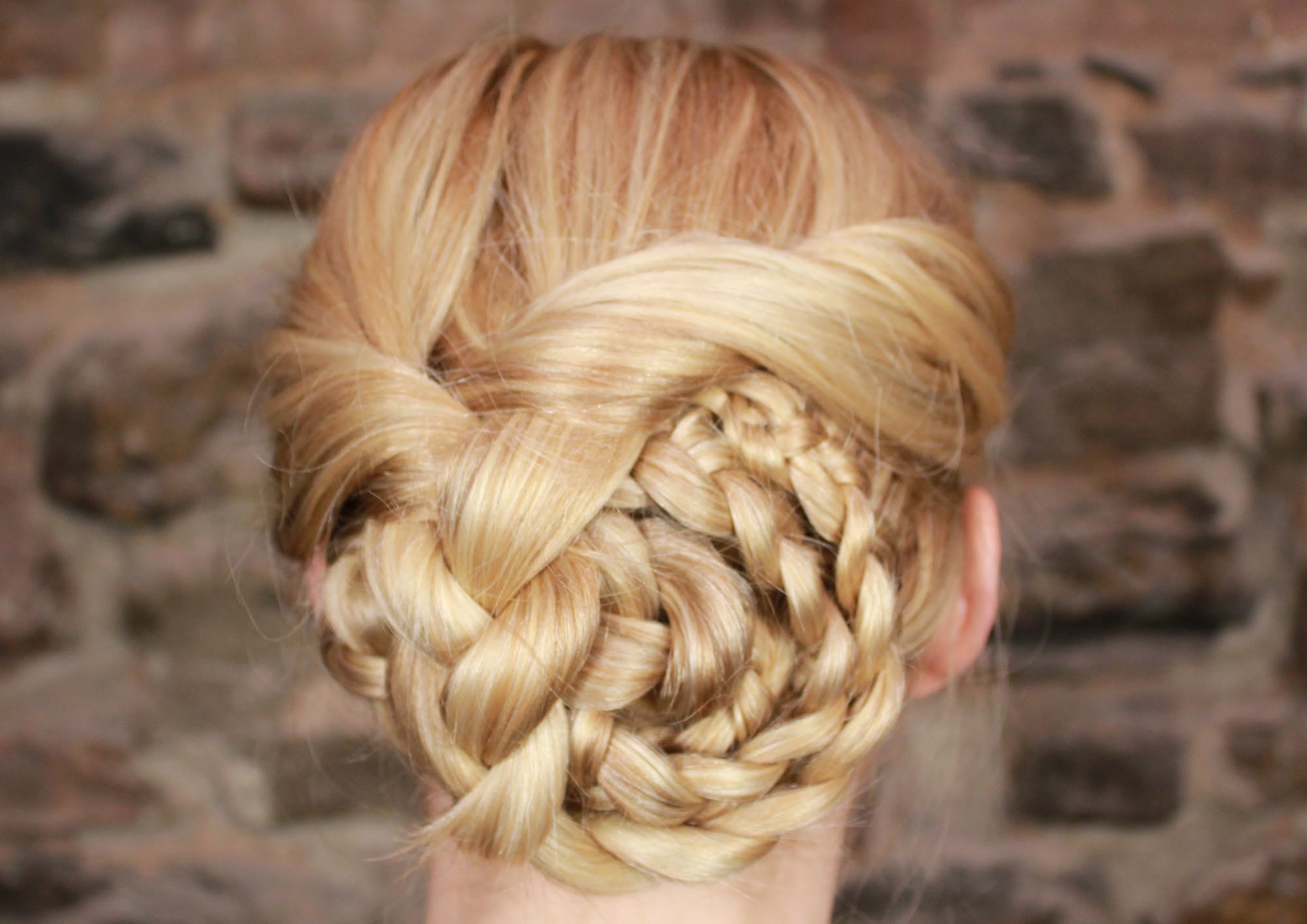 11. Возьмите левую косу и уложите ее сверху вокруг пучка. Закрепите ее с помощью невидимок.