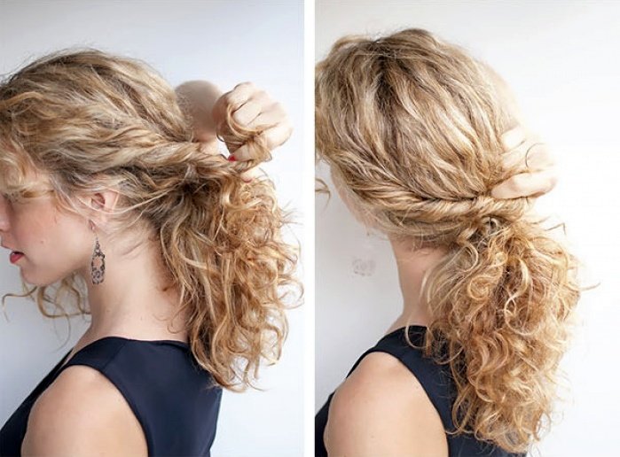 Это идеальная прическа для обладательниц натуральных вьющихся волос. Даже если у Вас нет времени на простейшую укладку, Вы можете сделать этот универсальный вариант. С помощью нескольких перекрученных кос, всего за несколько минут у Вас получится прекрасная женственная прическа для особого случая или на каждый день.